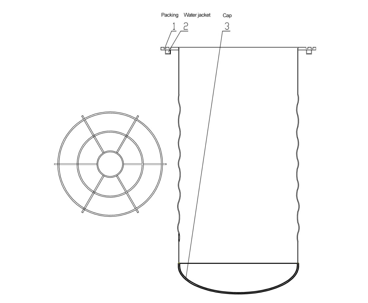 4. Furnace lid: The furnace lid is made of heat resistant steel SUS316, δ 8mm. The bottom adopts a head-type structure, and the butterfly shaped head is formed by back pressure.