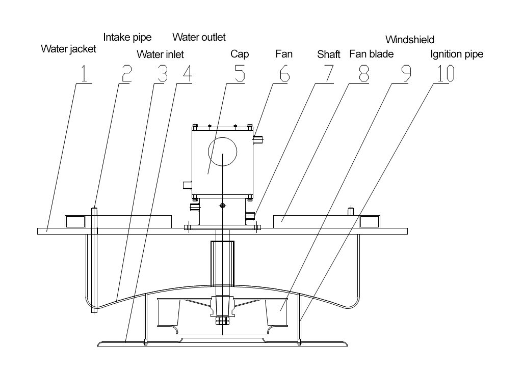 9. Fan blade: Fan blade φ350, air volume: 2400 — 3200M3/H, material: SUS316.