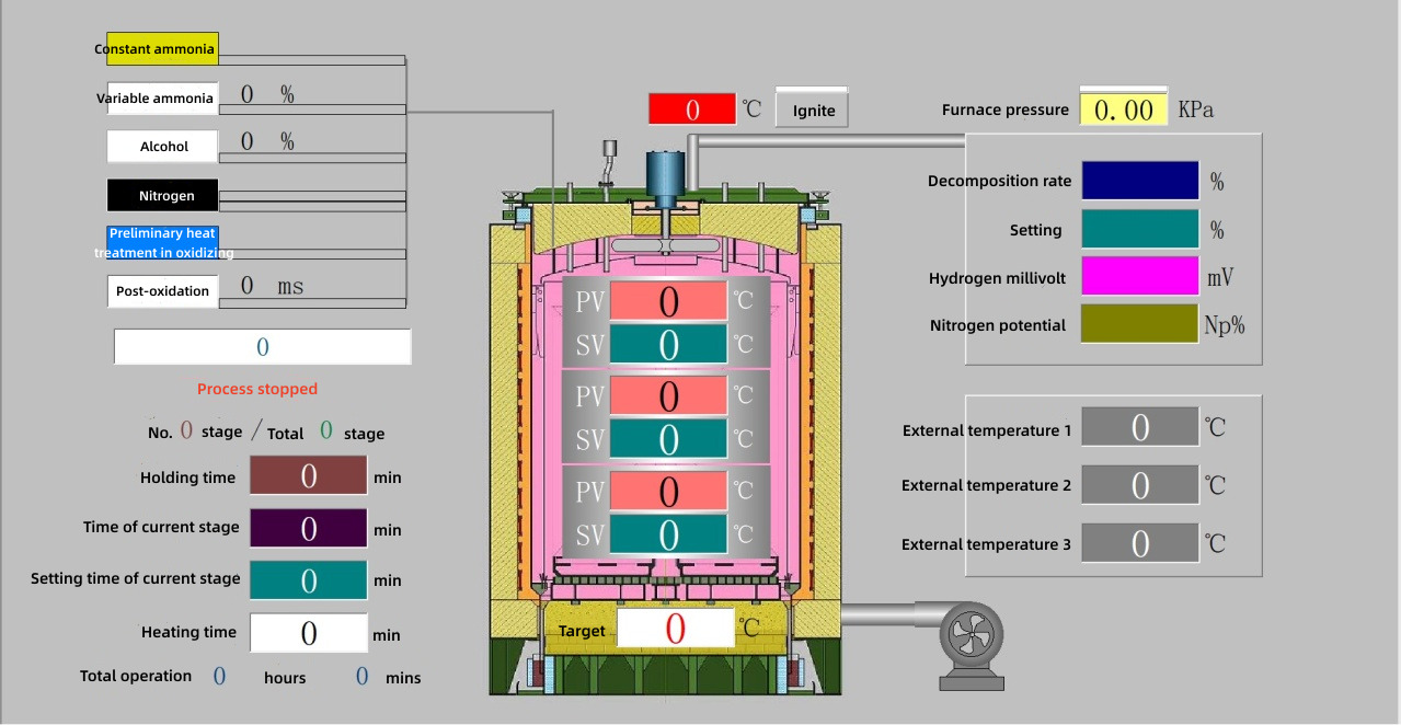 6. Fully functional: Equipped with nitrogen, ammonia, pressure monitoring, and alarm functions for high furnace temperature, circulating water interruption, circulating fan failure, cold air fan failure, and lifting motor failure.