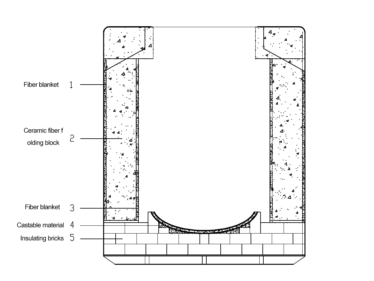 The furnace shell is usually welded from steel plates and steel sections, while the furnace lining is an energy-saving composite structure made of high-strength ultra lightweight energy-saving refractory bricks, aluminum silicate fibers, diatomaceous earth insulation bricks, and asbestos boards.